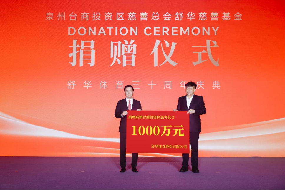 图为舒华体育向泉州台商投资区慈善总会捐赠1000万元