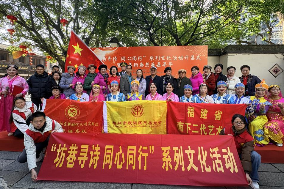 1月8日,“坊巷寻诗 同心同行”新春慈善嘉年华活动在福州三坊七巷历史文化街区举行。活动以诗歌为媒介、以慈善为纽带,汇聚诗人、作家、青少年代表、媒体记者、志愿者及市民游客等百余人,在千年坊巷共同演绎了一场文化传承与公益慈善交融的温馨盛宴。