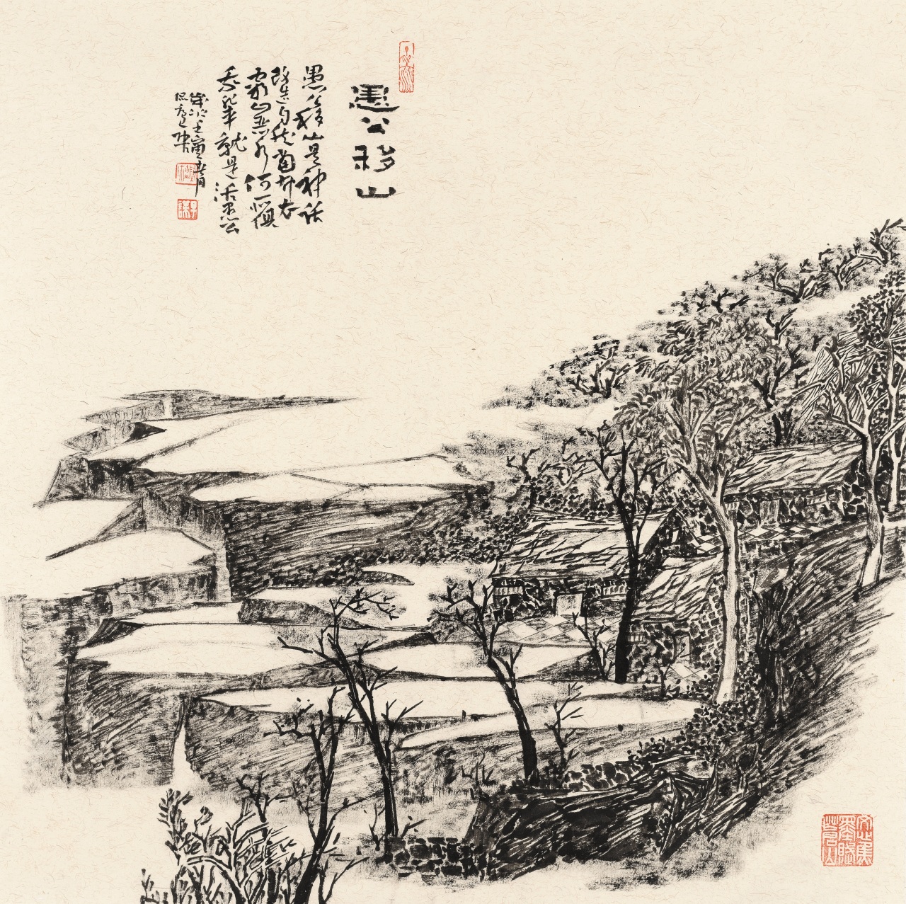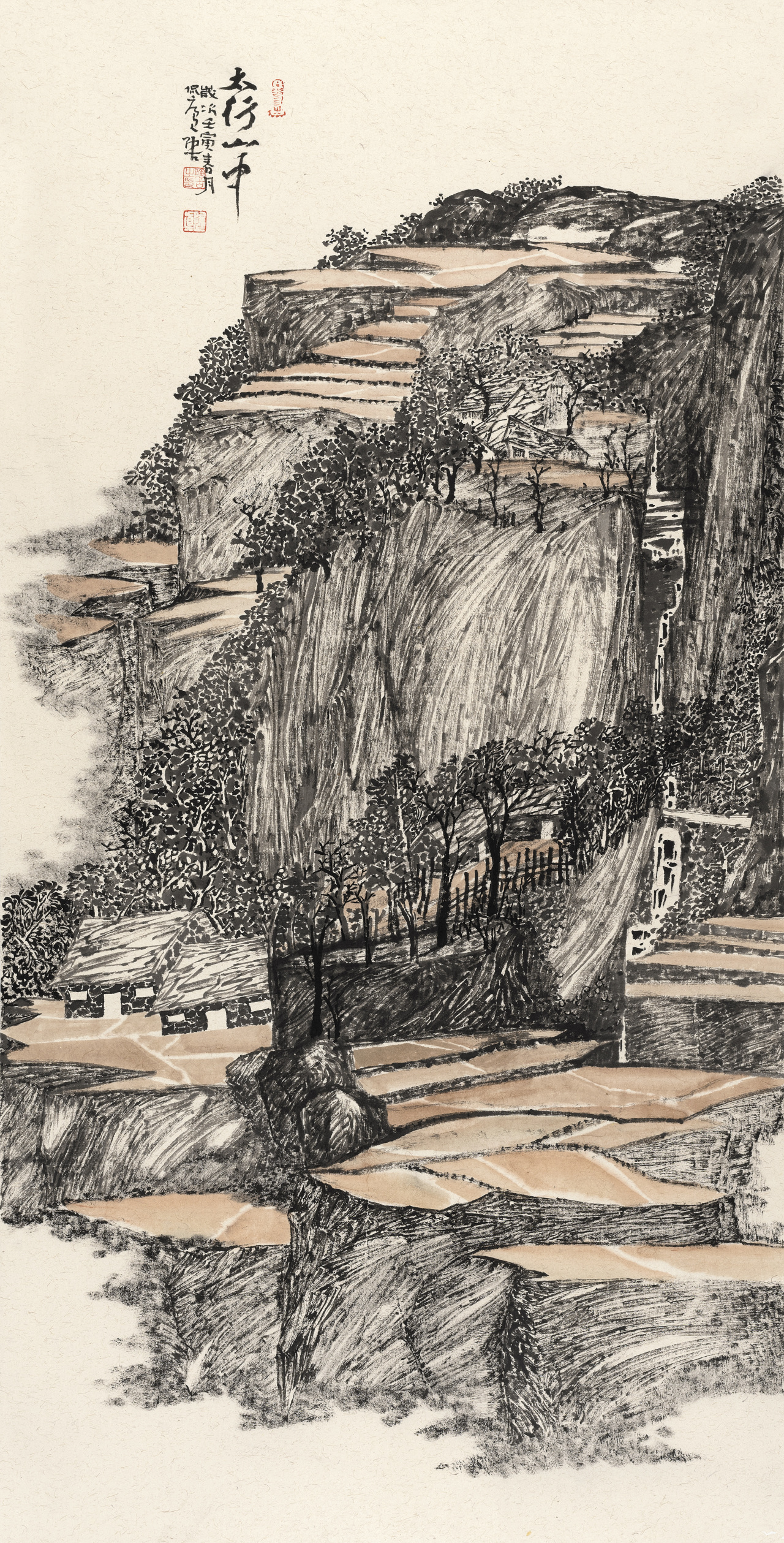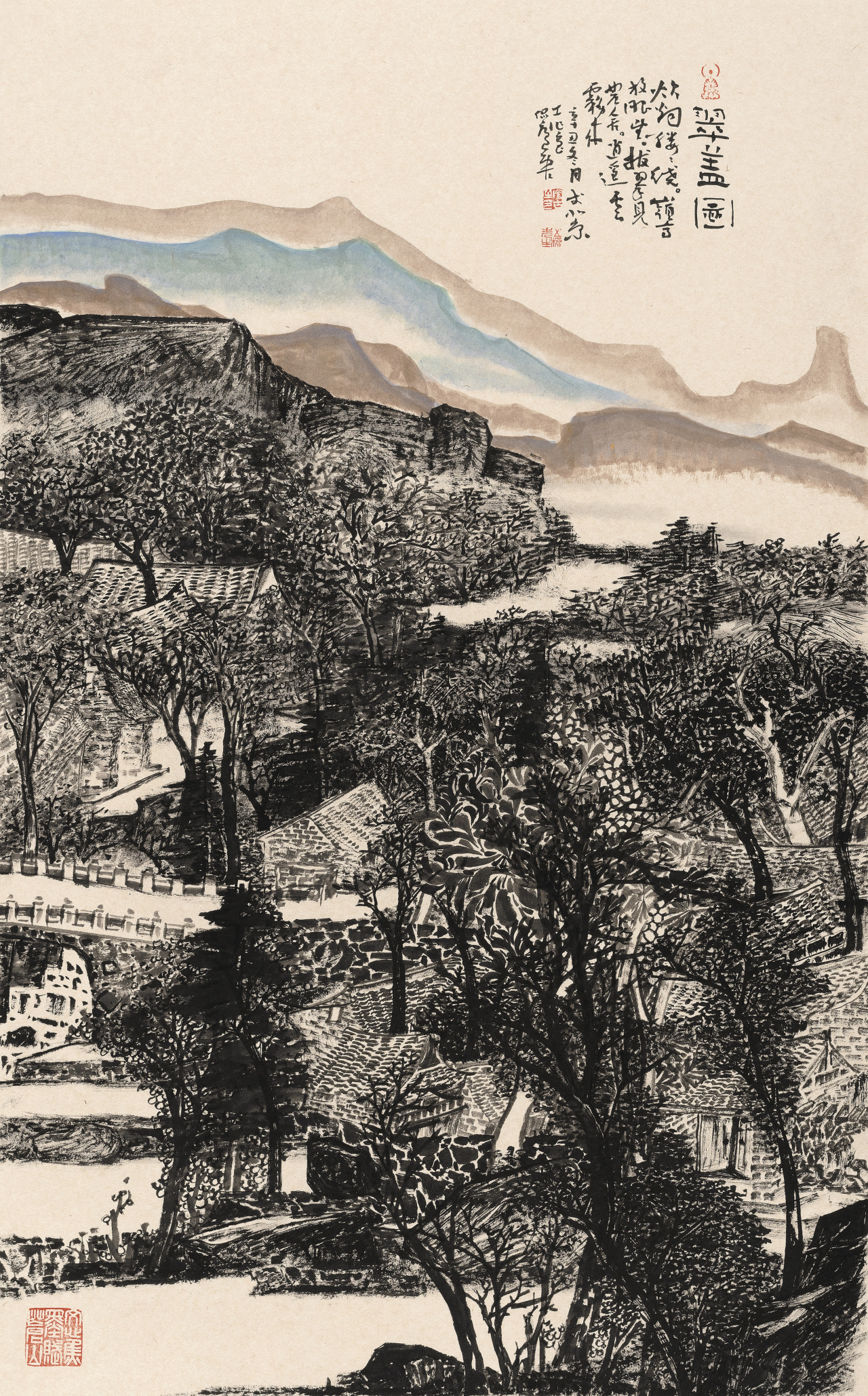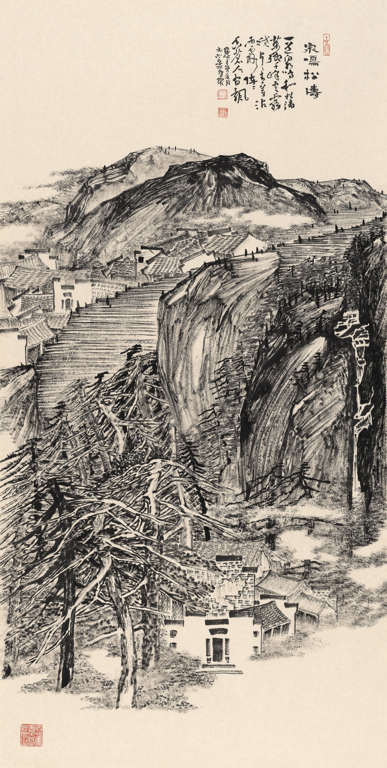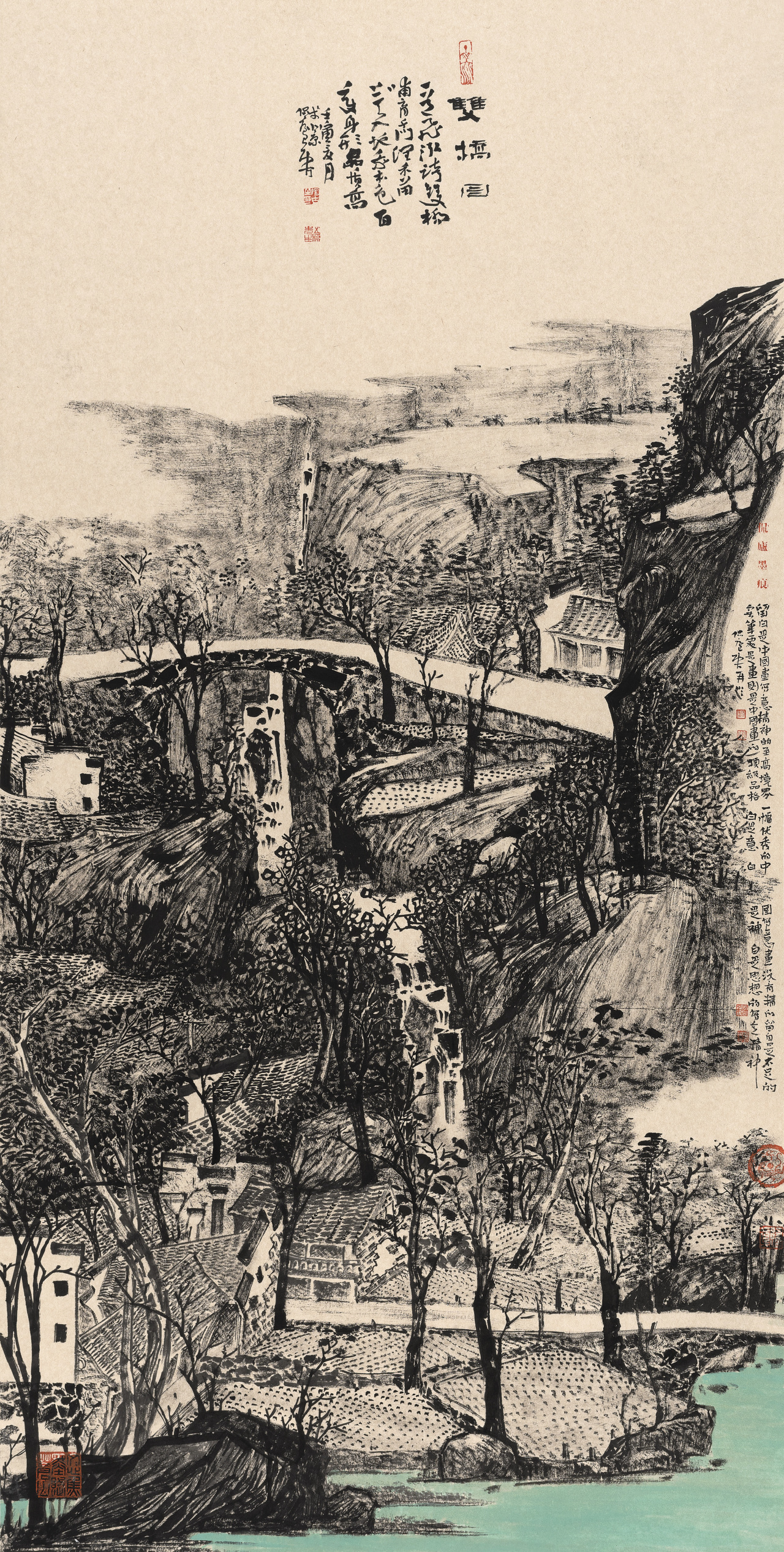 陶古的山水有人烟的,有村落的,从村落过渡到城镇,从城镇到城市,就到了钱学森提的“山水城市”这个概念,陶古在题材上填补了一般山水画家不敢碰的城镇与城市。1992年8月14日,大科学家钱学森给我写信说,笔墨当随时代,城市都那么热闹了,笔墨能不能画城市?