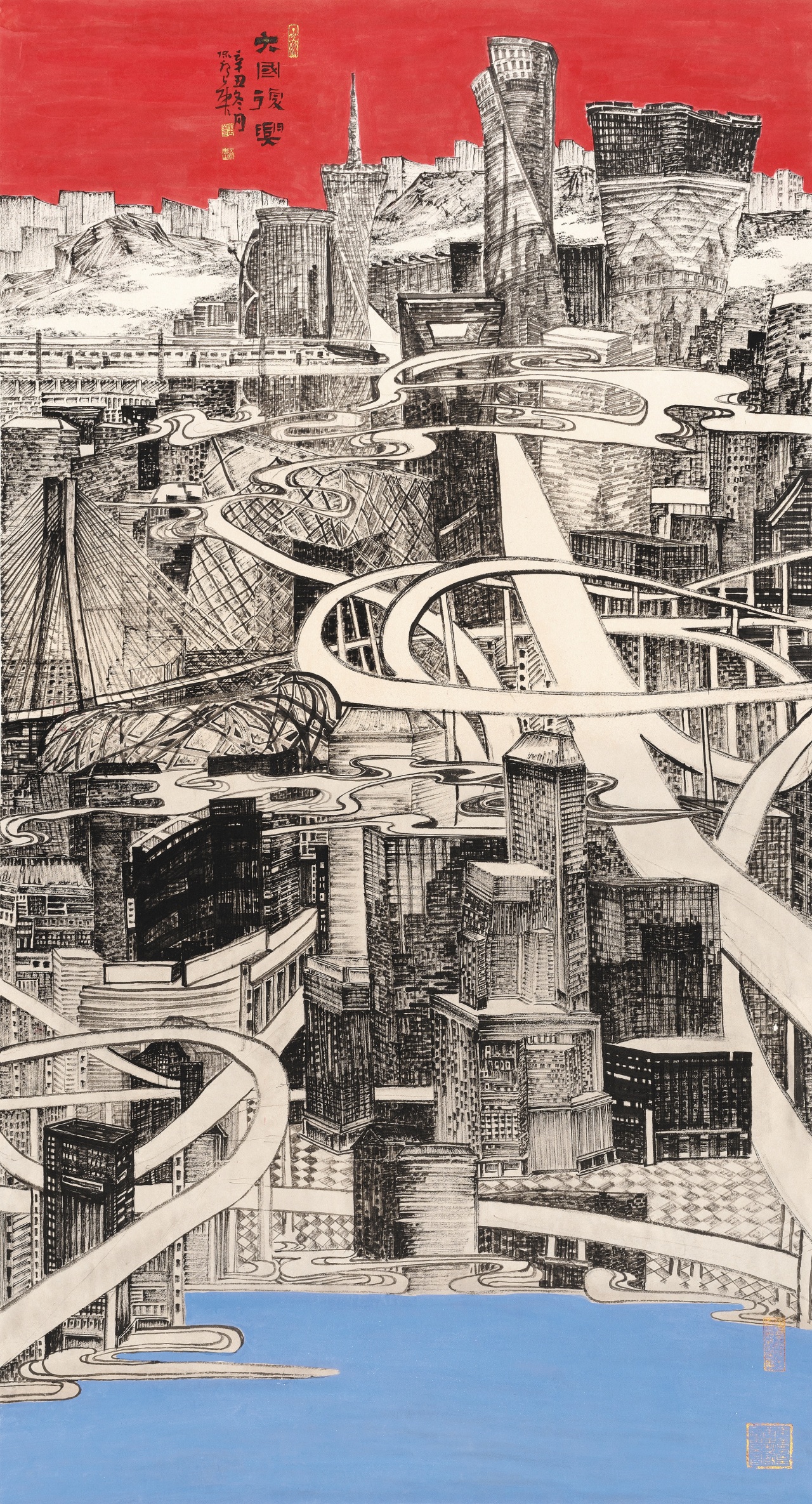 陶古的山水不单是山水,融入了城市元素,钱学森要是在的话,一定会关注,城市山水已经从焦墨的角度去创新,这非常好,非常有意思。